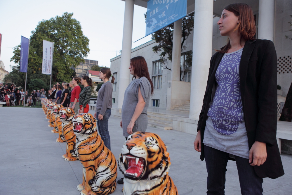 | Description | Marcello Maloberti's Die Schmetterlinge essen die Bananen, a performance in front of Moderna galerija (MG) at the 29th Biennial of Graphic Arts curated by Beti Žerovc under the title The Event, 2011. |