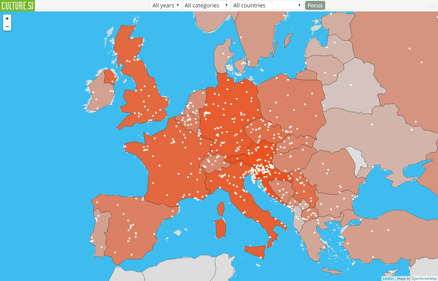 | Description | Online version (printscreen) of interactive Culture from Slovenia World Map, featuring events collected 2010-2014, Europe. |