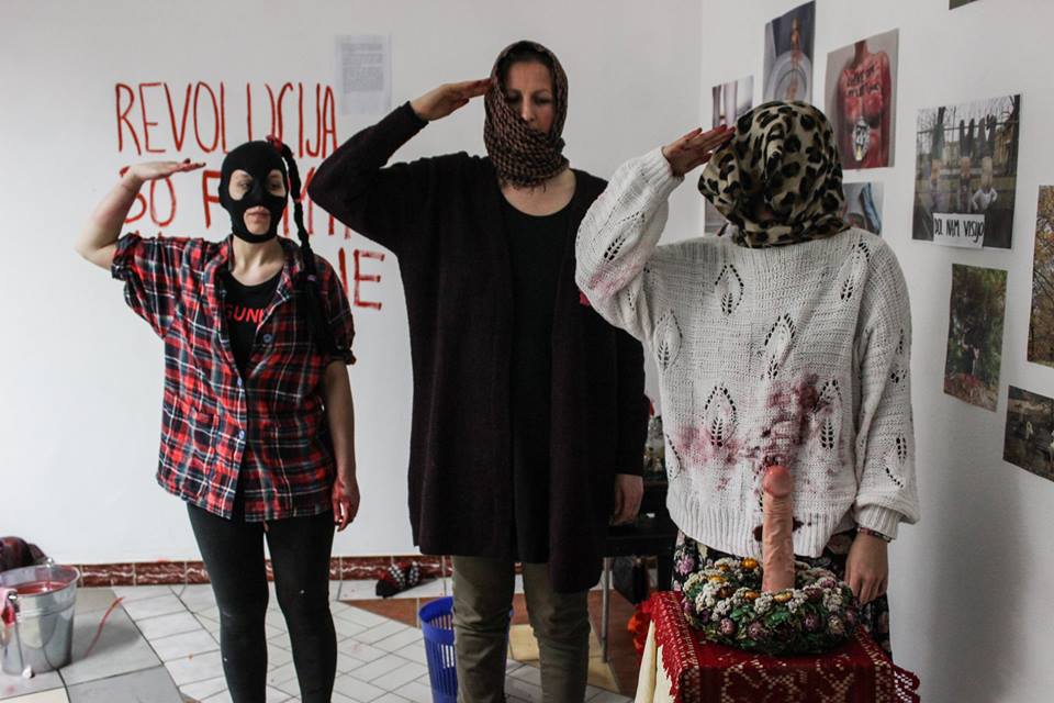| Description | Revolt Social Workers's opening performance of the exhibition I Spit on Revolution!, Križišče Gallery, 2018; at C.M.A.K. Cerkno. |