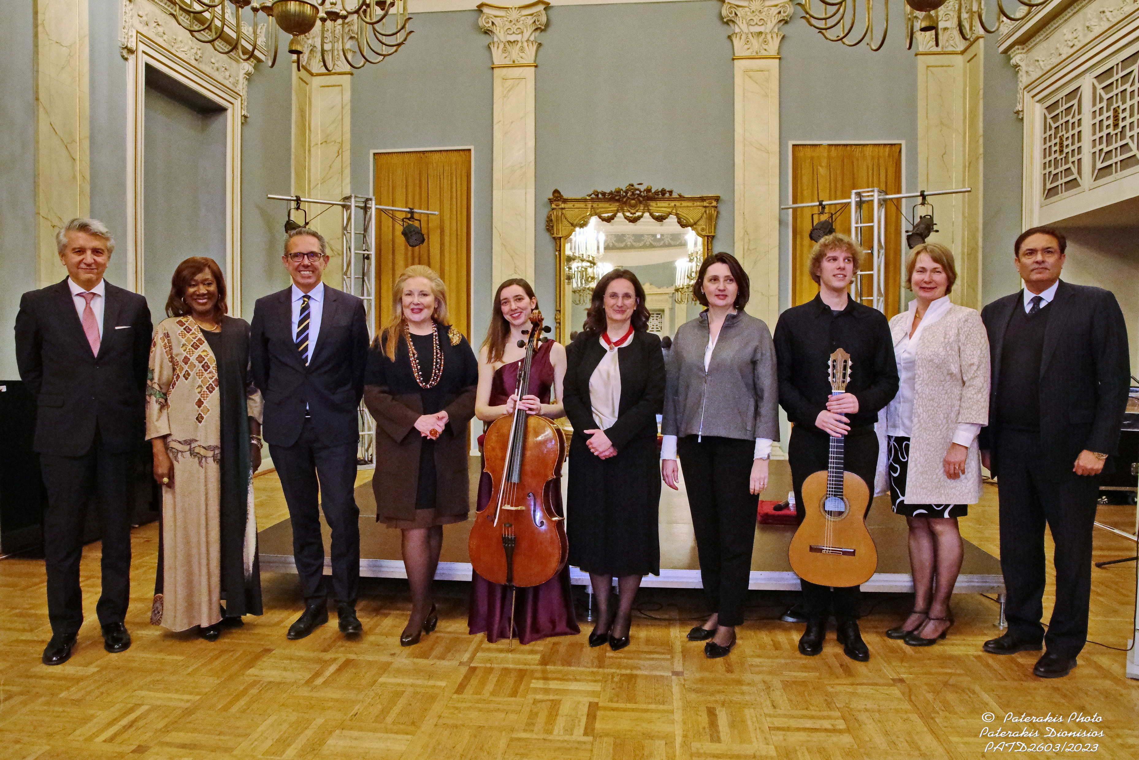| Description | Representatives of the Piraeus Municipality and the Slovenian Embassy in Athens (Tamara Weingerl Požar, Ambassador) with the musicians Timotej Kosovinc and Christina Basili who gave a concert at the Municipal Theatre of Piraeus, 2023 |