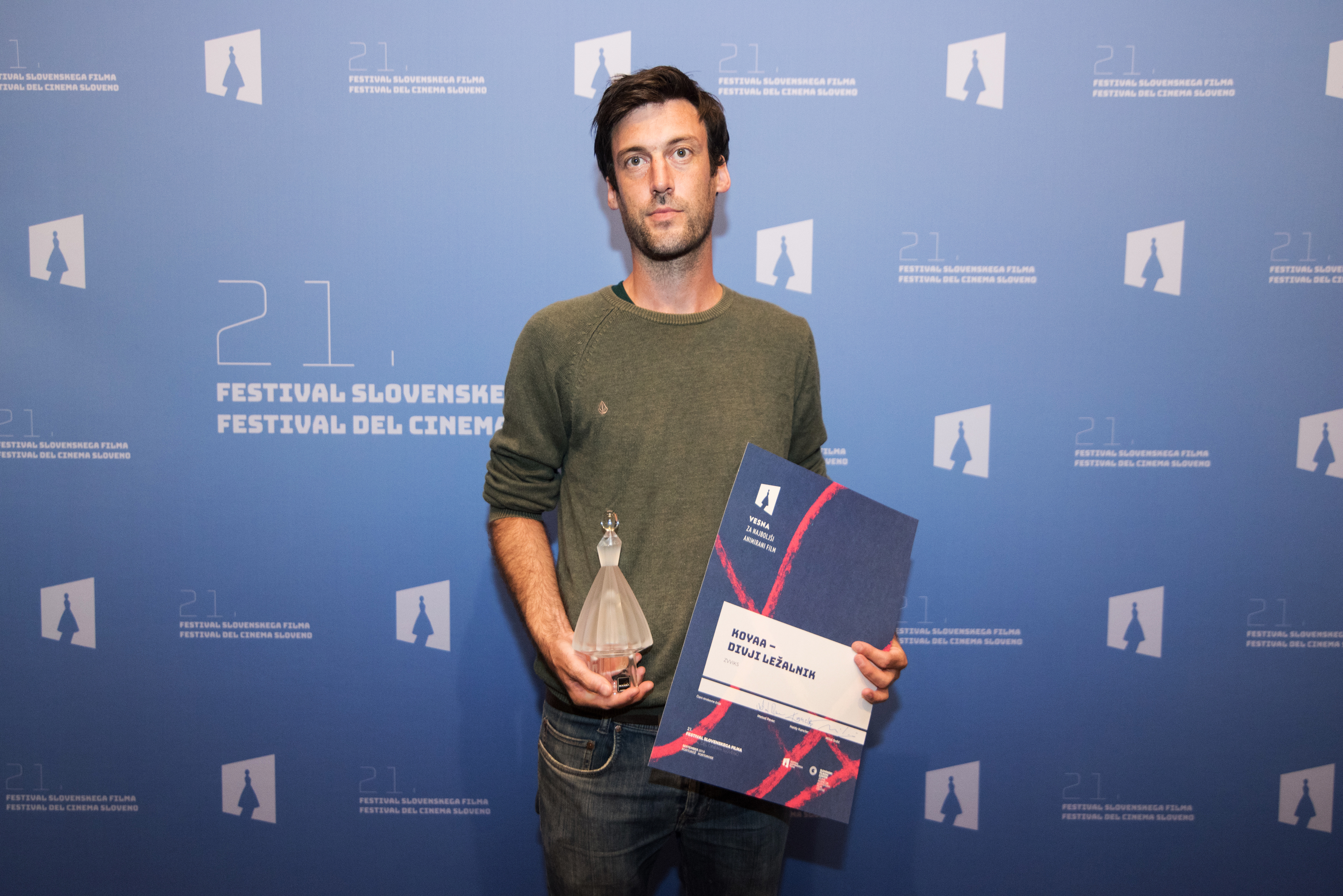 | Description | Kolja Saksida, the winner of Vesna Award at 21. Festival of Slovenian Film at Portorož Auditorium, 2018. |