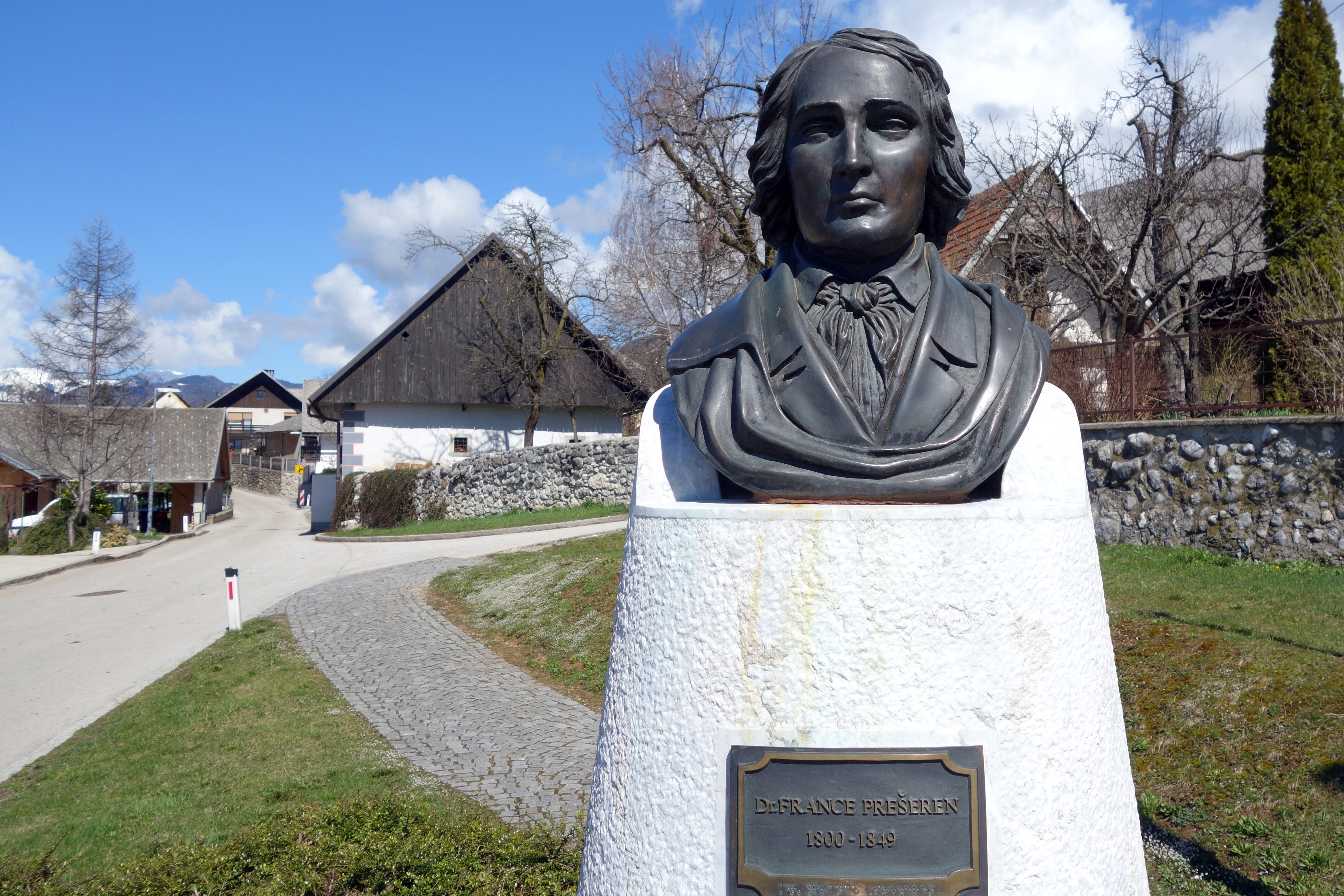 | Description | France Prešeren bust in Vrba, the Birthplace of France Prešerenin the background. A bronze replica of a plaster statue created in 1865 by Franc Ksaver Zajec, 2013 |