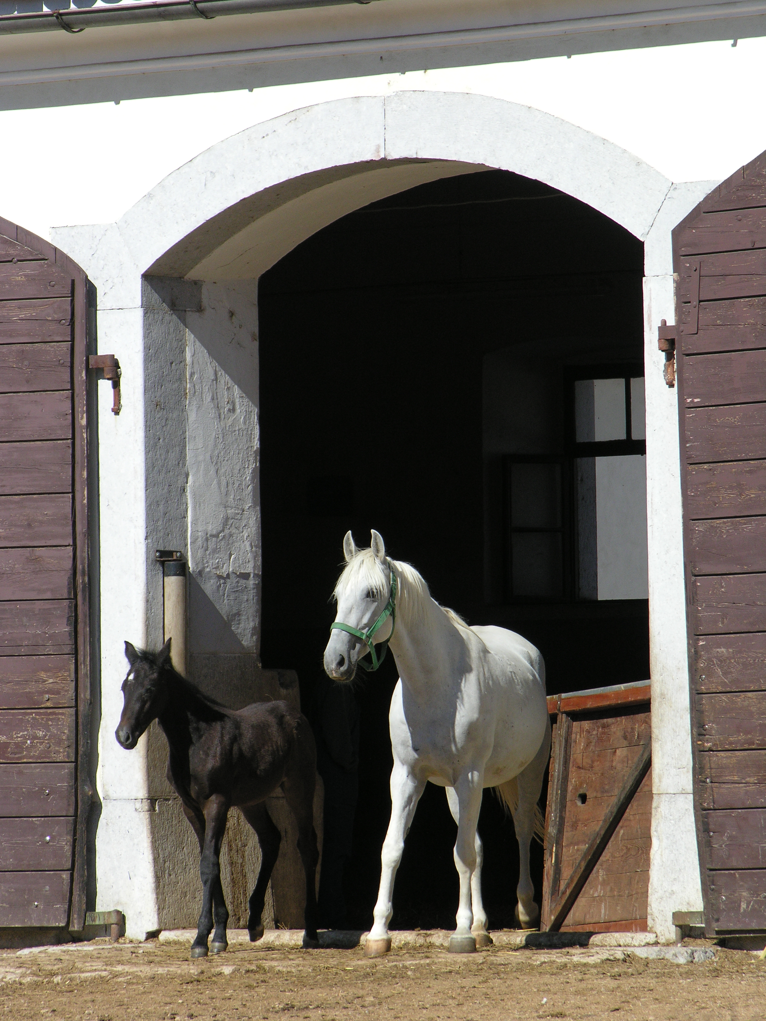 | Description | Lipizzaner mare and foal at the Lipica Stud Farm, the royal stud farm was established by the Hapsburg Archduke Charles in the abandoned summer residence of the Bishop of Trieste in 1578 |