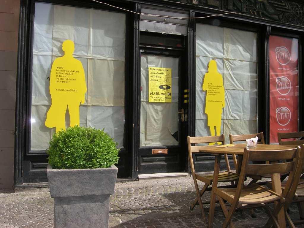 | Description | Part of the Izbrisan16let.si (TheErased16years) project by Poper Studio, set at various locations around the city of Ljubljana, 2008 |