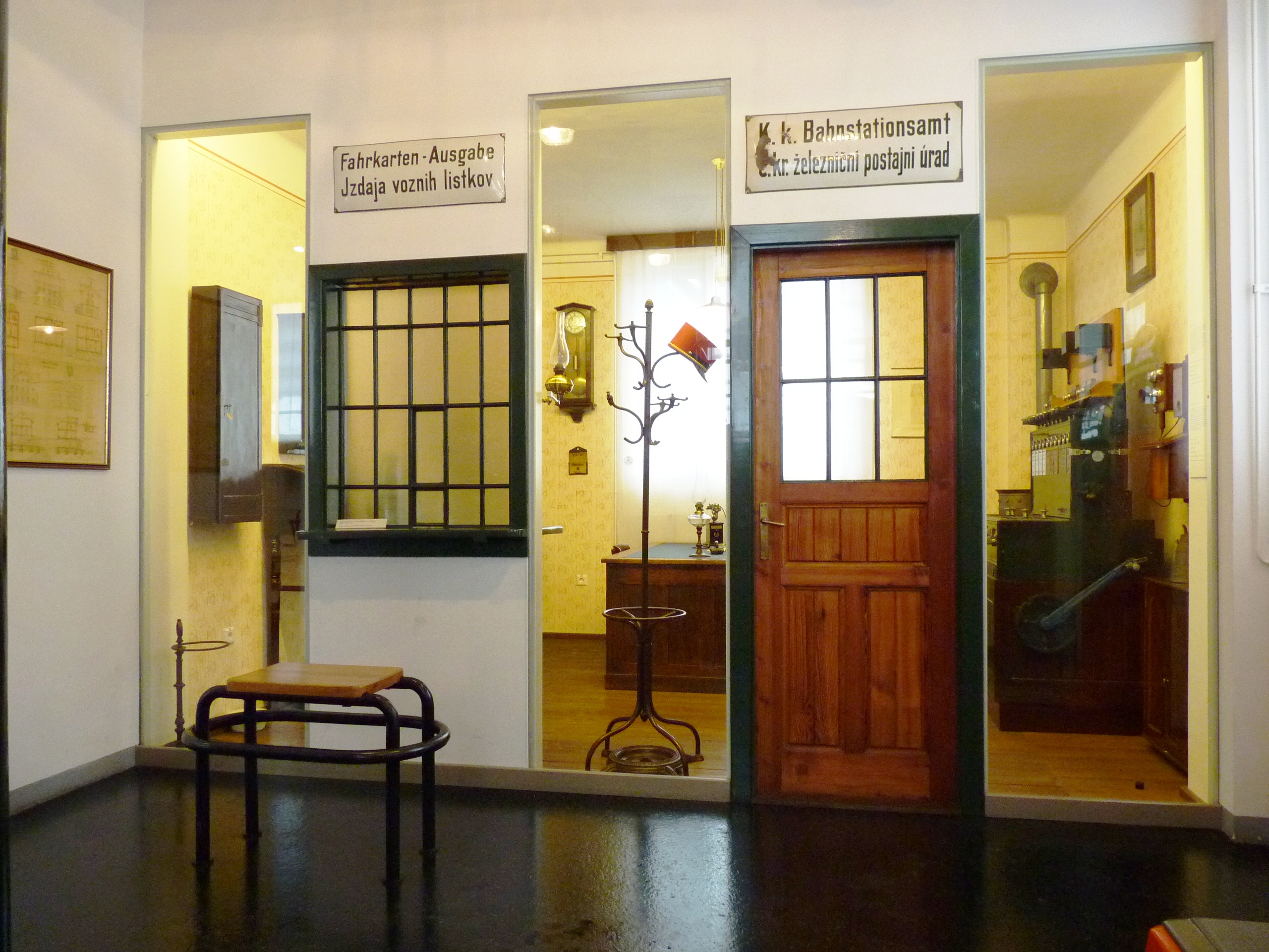 | Description | A reconstruction of the historic railway station, as set up at the Railway Museum of Slovenske Železnice, 2012 |