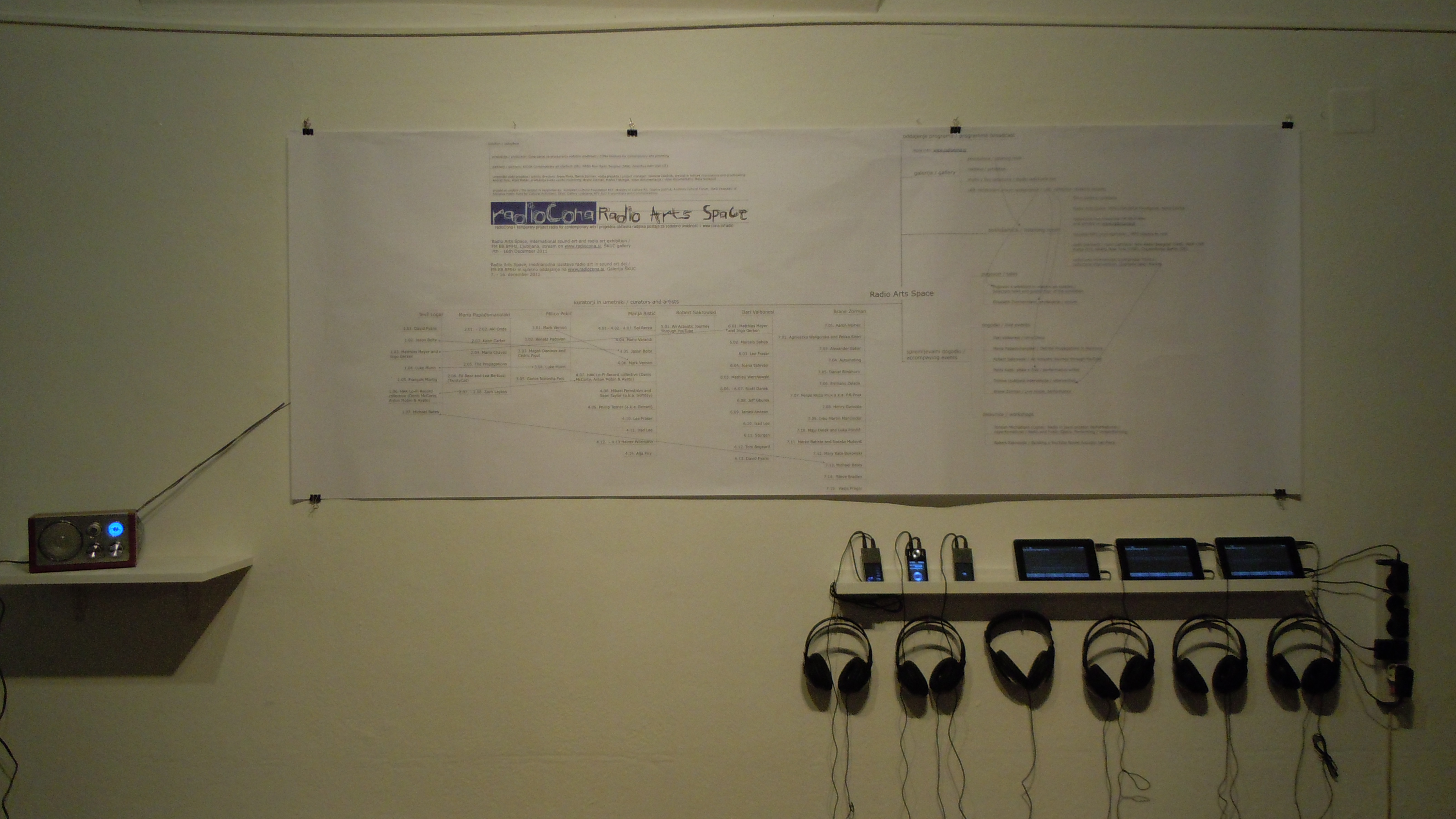 | Description | Radio Arts Space exhibition by RadioCona featuring 46 artworks of sound and radio art selected by seven curators, Škuc Gallery, 2011 |
