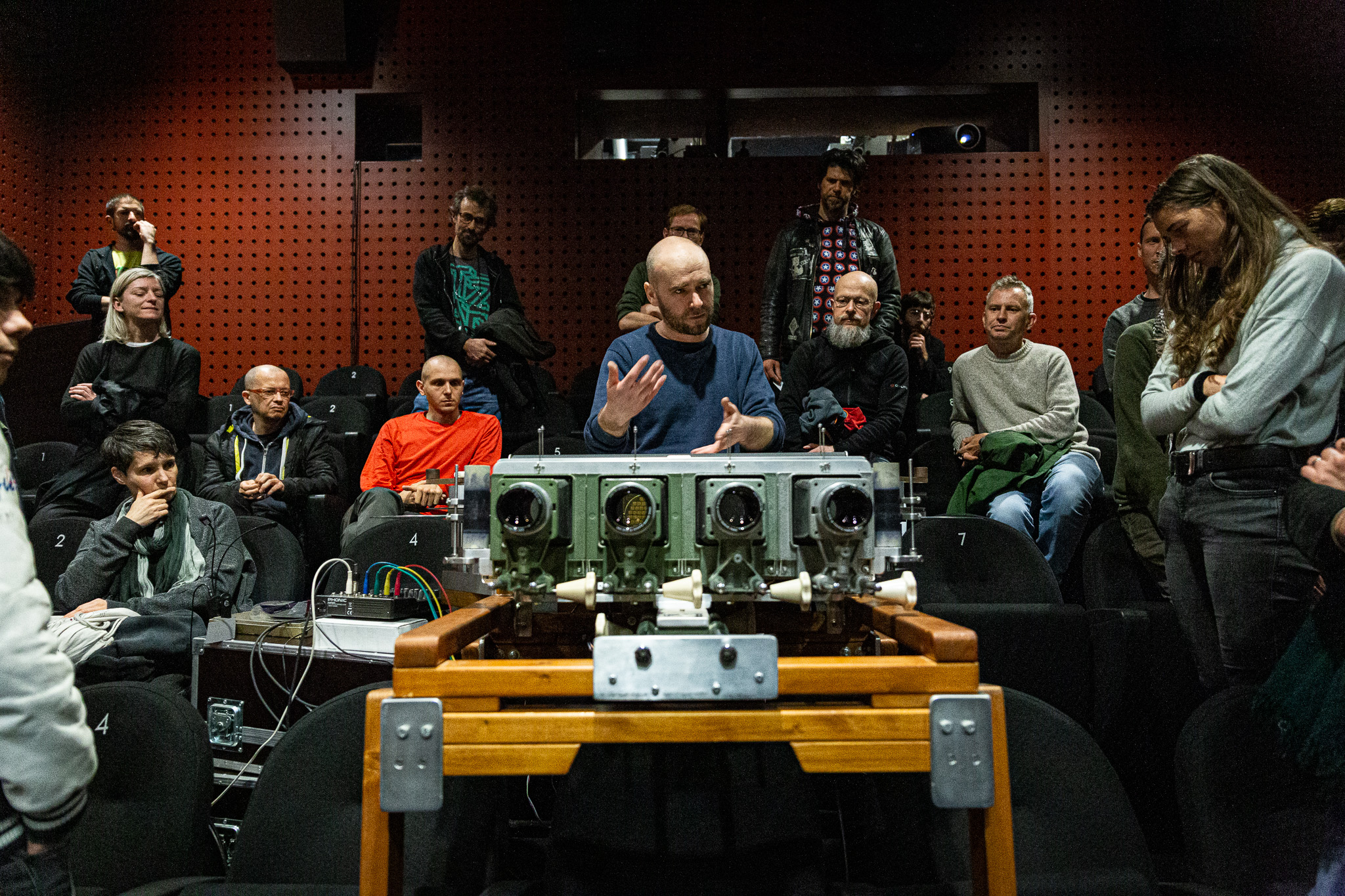 | Description | The presentation of Archeoscope, a special opto-mechanical projecting apparatus created for live film performances, invented and constructed by Czech filmmaker Jan Kulka, V-F-X Ljubljana 2023. Author: Asiana Jurca Avci |