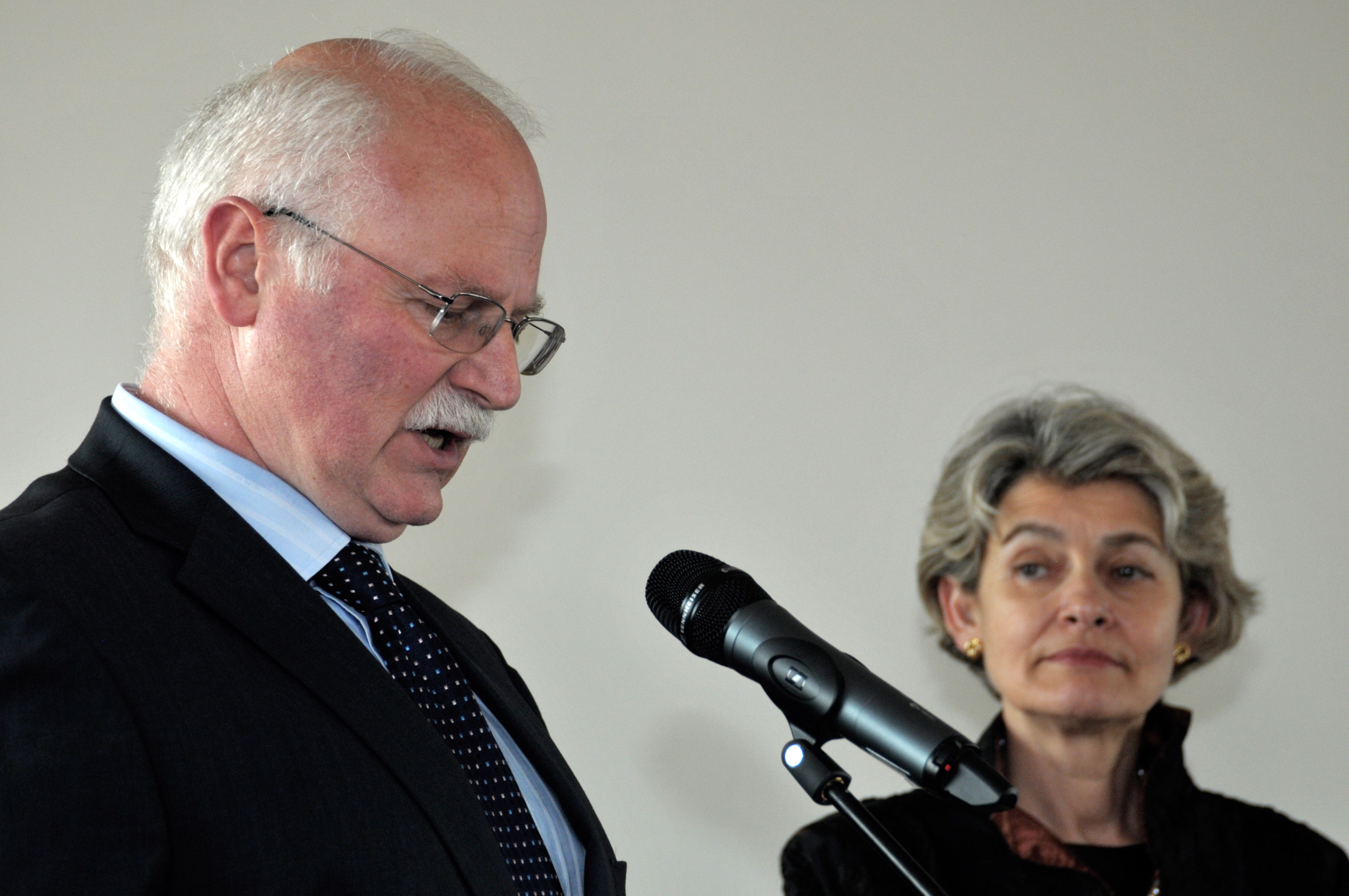 | Description | Presentation of the World Book Capital Ljubljana 2010 presentation at UNESCO in Paris. Irina Bokova, UNESCO Secretary General, and Dr Janez Šumrada, Slovenian representative at UNESCO. |