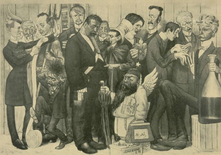 “Art critics”, Hinko Smrekar’s caricature in the Dom in svet monthly published by Catholic Printers Society, 1912, XXVII, No 8 (DLib, National and University Library, Ljubljana)